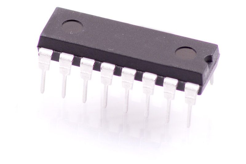 DC Motor Controller chip. Supports forward-reverse-stop control of two DC motors from 4 logic line signals.