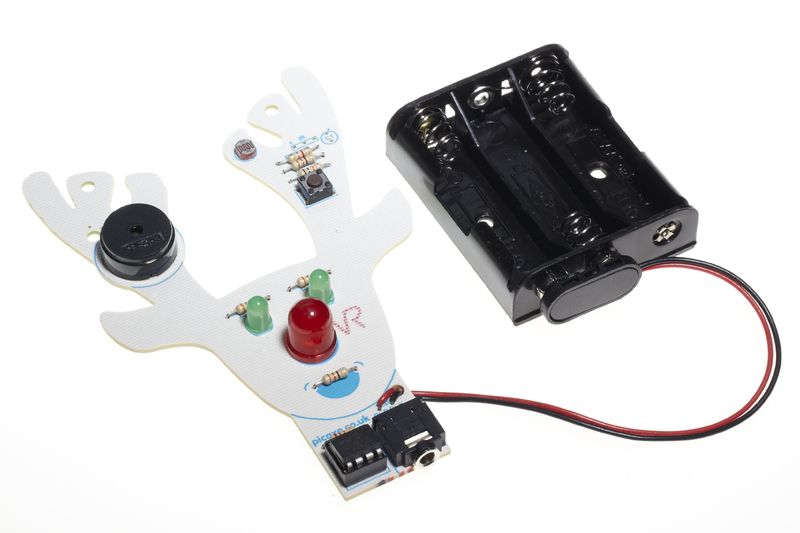 Rudolph can be programmed to react to touch (via a push switch) and play a tune of your choice (naturally 'Rudolph the Red Nose Reindeer' is always a popular choice!).
