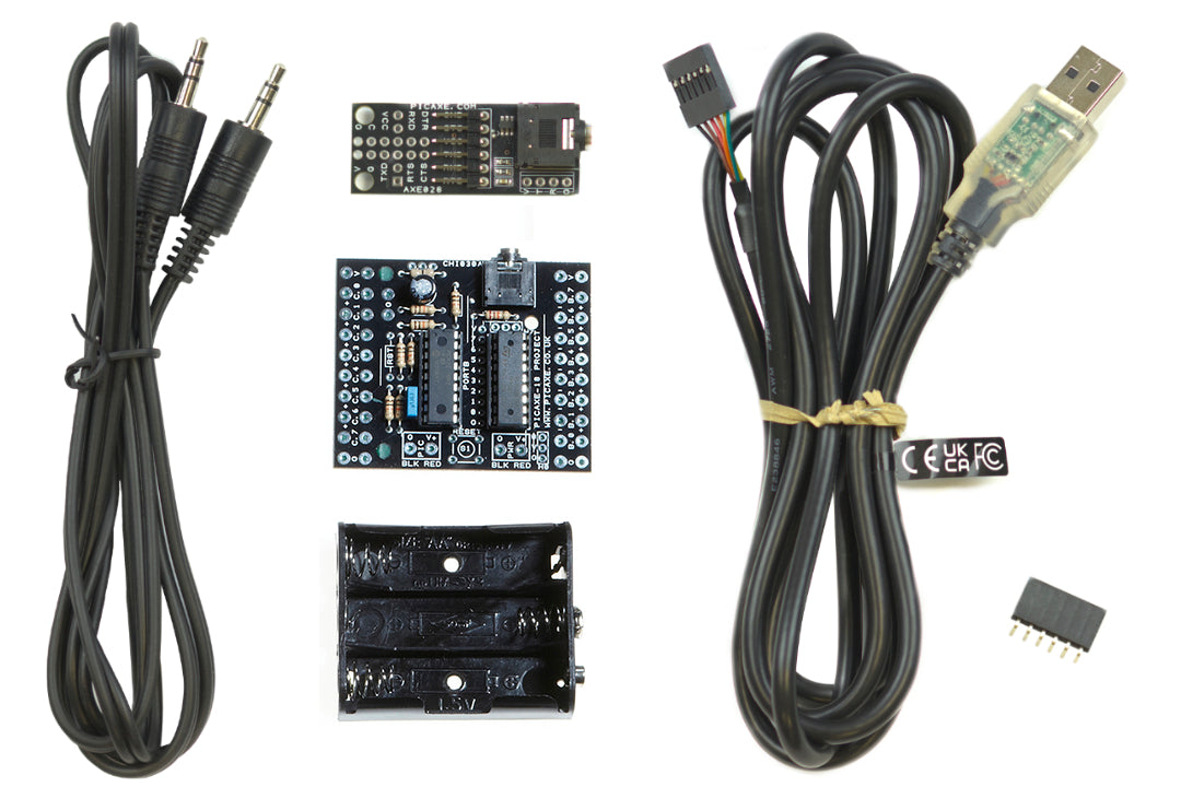This PICAXE-18M2 Starter Pack is a bundle including the pre assembled PICAXE-18 Standard Project Board (CHI030), download cable, a battery box, and all software and documentation. See details about the programming cable options here.