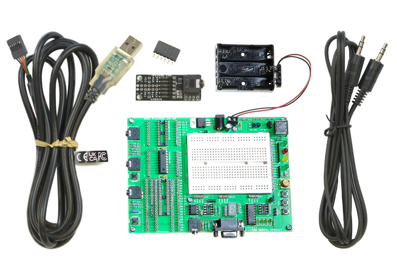 This PICAXE Experimenter Starter Pack is a very versatile bundle for anyone eager to get started experimenting with PICAXE right away. The kit comes with a PICAXE-18M2 and download cable, but the open design let's you use any of the PICAXE chips, sold separately. See details about the programming cable options here.