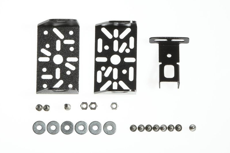A pan & tilt mechanism for the SRF005 ultrasonic sensor. Can either be used as a simple fixed position mount, or with two GBX013 miniature servos (not included) as a full pan and tilt mechanism.